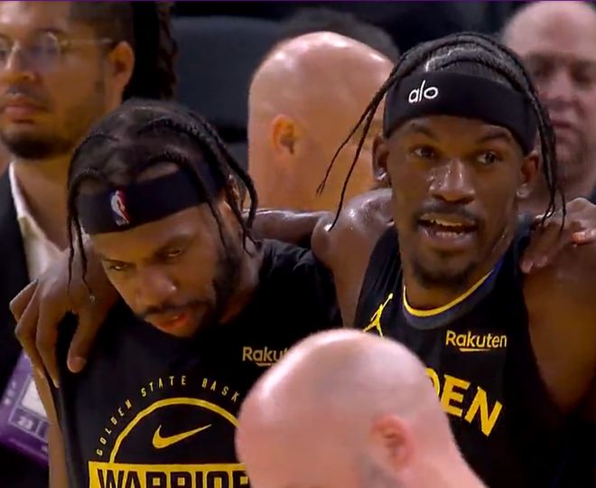 硬漢!巴特勒右膝反關節被攙扶下場 擠出一絲笑容為勇士提振士氣