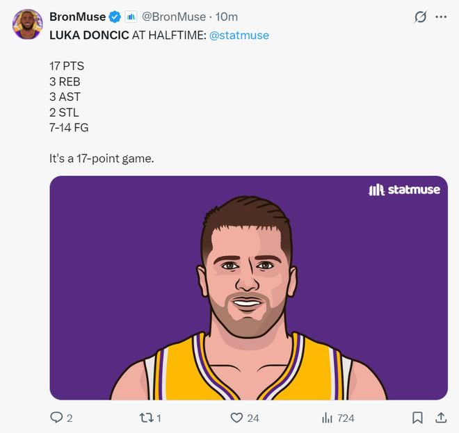 上半場打完東契奇拿到17分3籃板3助攻2搶斷,詹黑媒體寫道:快船這個陣容就是之前東契奇砍下73分的配置,但比起現在湖人的陣容我寧愿選擇快船,因為他們至少清楚自己的角色能拉開空間并全力以赴,而現在的湖人隊個人私心雜念太多。