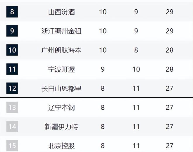廣廈輸球仍第1,廣東追平豪門,山東逼近前4,遼寧第13,黑馬隕落