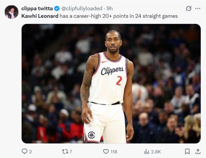 快船18戰(zhàn)15勝!小卡場均32.1分聯(lián)盟封王 連續(xù)24場20+創(chuàng)生涯新高