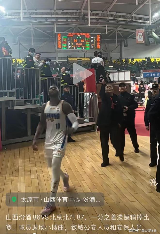 此外,在比賽結束后,當北京隊球員離場上,看臺上有球迷竟然沖球員吐口水,在北京隊提出抗議后,警察和保安上前進行了制止……