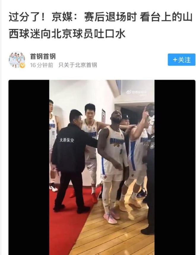 最后一個消息,分享一下山西球迷又闖禍的情況。在最新對戰北京隊的比賽中,山西球迷又做出了一些備受爭議的事情。當時比賽結束之后,北京隊的外援走過球員通道,沒有想到卻遭到主場球迷吐口水的待遇。這個做法也在現場引發了巨大的爭議,很多球迷包括北京隊的球員都對這樣的做法非常不滿。目前暫時沒有看到CBA官方公布的最新罰單,但正常來說這樣的做法極有可能會導致山西球隊遭到聯盟的處罰,甚至停止主場的結果。
