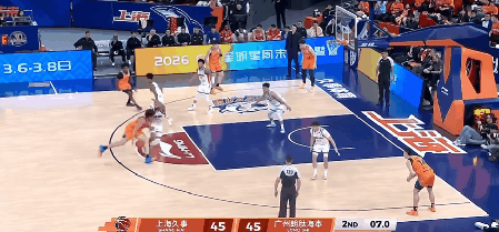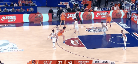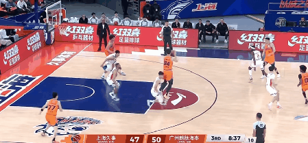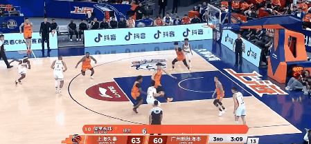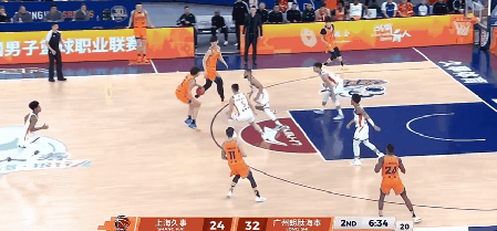 開場后,廣州男籃反客為主,連續命中3記3分,而上海男籃這套首發陣容一分未得,以0比12落后。