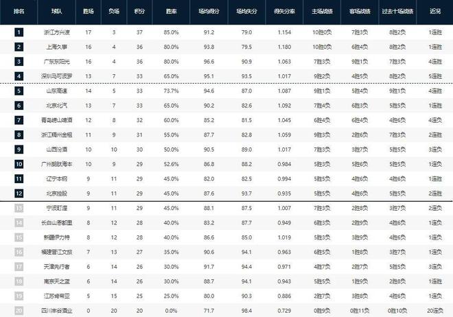 CBA最新排名:廣廈捍衛領頭羊 兩大黑馬戰績狂飆 四川20連敗惹爭議