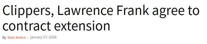 北京時間1月28日,據The Athletic報道,快船隊決心對籃球運營總裁勞倫斯-弗蘭克予以重用,雙方已達成一份多年續約合同。聯盟消息人士透露,這份新合同期限為四年,預計快船管理層其他人員的續約事宜也將陸續跟進。