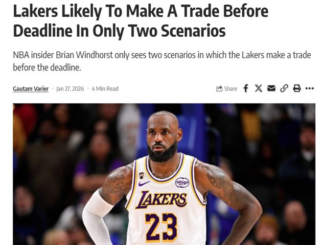 消息來自于ESPN名記Brian Windhorst,他在參加播客節目《The Hoop Collective》中談及湖人在這個交易截止日的計劃時坦言,紫金軍團想要交易只有兩種可能。