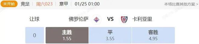 主隊信息:佛羅倫薩這個賽季開局表現糟糕,但是他們的陣容實力其實是很強的,開局的糟糕表現只是球隊狀態不佳,最近一段時間他們的整體狀態明顯有所回暖,最近4輪聯賽他們取得了2勝2平的成績,而且平的兩場比賽對手是米蘭以及拉齊奧這兩個強敵,上一輪他們還客場擊敗了實力不俗的博洛尼亞,表現可圈可點。此戰坐鎮主場面對不強的卡利亞里,相信他們可以順利拿下。