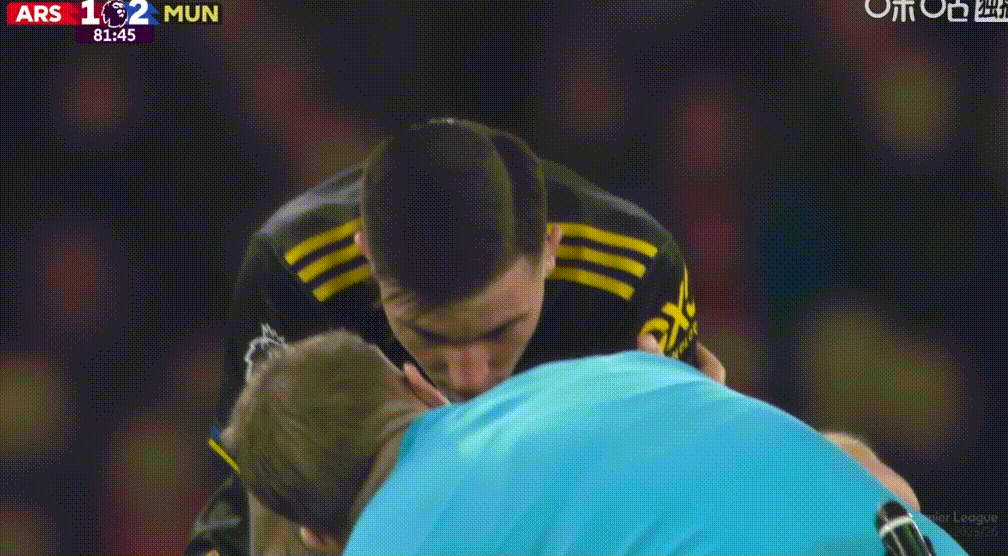 比賽第82分鐘,曼聯(lián)守轉(zhuǎn)攻,B費(fèi)想要外腳背傳球給左路高速插上的庫尼亞。但剛剛替補(bǔ)登場的謝什科正好擋在傳球路線上,皮球悶到了他的臉上。但這次用臉的直塞還是塞大了,被拉亞沒收。