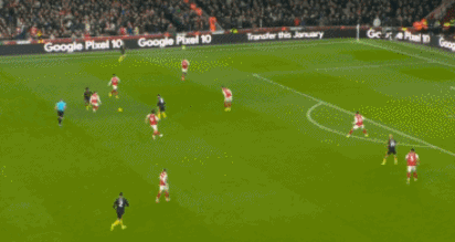 在上任首場擊敗瓜迪奧拉的曼城后,面對阿爾特塔帶領的阿森納,薩卡、熱四斯和特羅薩德組成進攻三叉戟??ɡ锟藶槁摾^續采用4231陣型,姆伯莫突前,身后是多古、B費和阿馬德-迪亞洛。