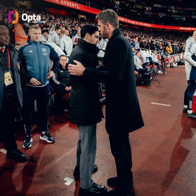 英超第23輪,曼聯客場3-2逆轉擊敗阿森納,至此,卡里克成為唯一一位至少2次對陣阿爾特塔仍保持100%勝率的主帥。
