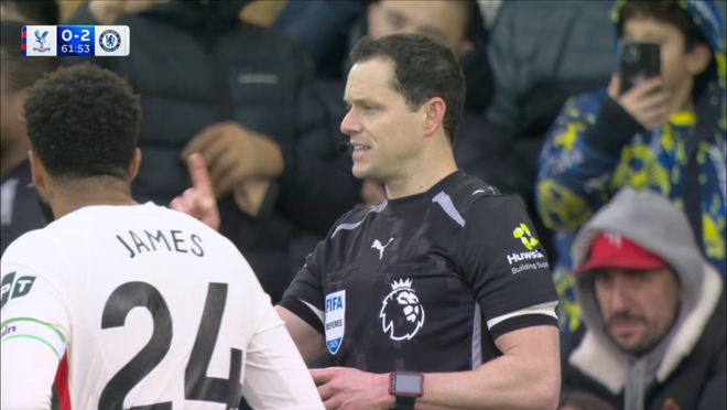 周日,在曼城對狼隊一戰擔任視頻助理裁判的達倫-英格蘭,擔任水晶宮對切爾西一戰的主裁判。同樣面對禁區內的手球動作,達倫-英格蘭做出了不同的判罰。