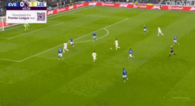 第28分鐘,詹姆斯-賈斯廷禁區推射破門,利茲聯1-0埃弗頓