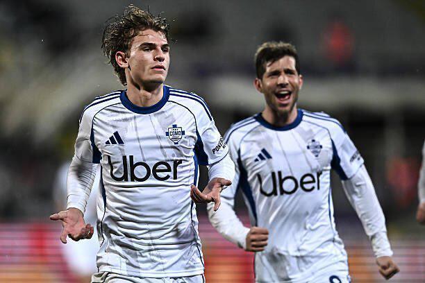 比賽開始后,主隊紫百合眾將很快進入狀態,僅僅開打7分鐘,法比安在前場右路無人干擾的情況下送出精準傳中,皮科利心領神會插上,在禁區右側不停球直接凌空抽射,皮球直掛死角,1-0,佛羅倫薩搶下夢幻開局,弗蘭基球場瞬間沸騰。這一刻,紫百合的球迷似乎看到了久違的希望。畢竟在賽前6場各項賽事中,佛羅倫薩僅取得2勝2平2負,狀態談不上理想,而意大利杯,正是他們試圖換賽道止血的最好機會。
