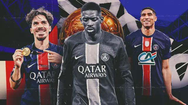 巴黎圣日耳曼(433):舍瓦利耶/阿什拉夫、馬爾基尼奧斯、帕喬、努諾-門德斯/若昂-內(nèi)維斯、維蒂尼亞、法比安-魯伊斯/杜埃、登貝萊、巴爾科拉